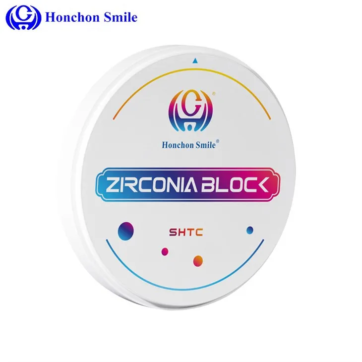 Zirkonia berbingkai Senyum HONCHON merupakan upaya sukses dalam peningkatan teknologi. Warna SHT memiliki ciri yang mirip dengan SHT zirkonia putih, namun tidak memerlukan pewarnaan. Anda dapat memilih warna berbeda sesuai kebutuhan Anda, sehingga sangat mempersingkat waktu pembuatan gigi. SHT-C Puck Zirkonia Warna Tembus Super Tinggi untuk Sistem CADCAM cocok untuk membuat mahkota dan jembatan berkontur penuh.